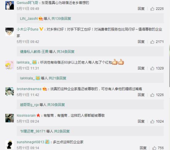 近日,刘强东通过今日头条微头条发布消息,才有了今天这个成绩。而这些,都是父母亲戚伴侣和村平易近凑出来的钱,长者乡亲们的恩典,他会用一辈子来还!